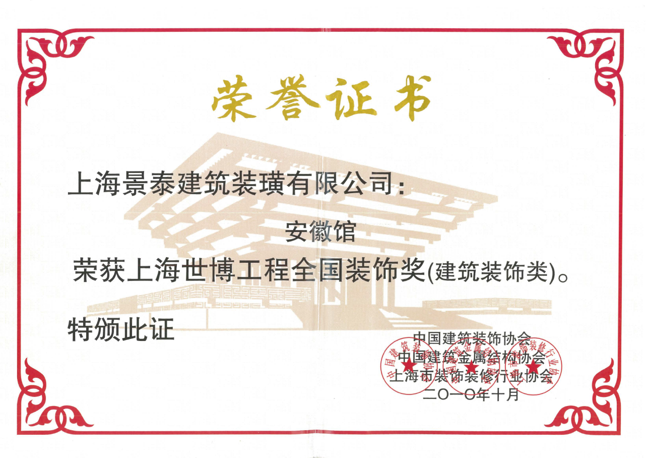 • National Decoration Award of Expo Shanghai (Architectural Decoration) - Anhui Exhibition Hall