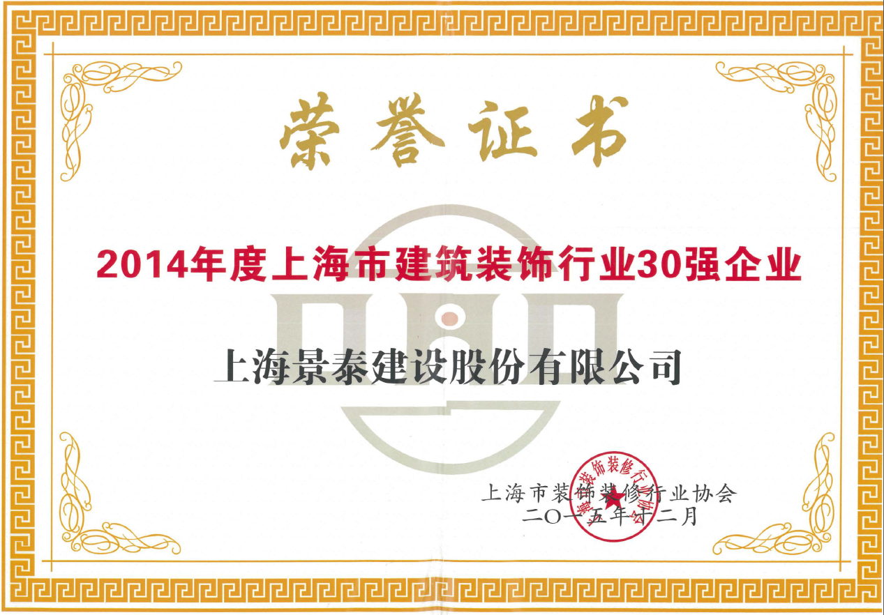 • Top-30 Decoration Enterprise of Shanghai in 2014