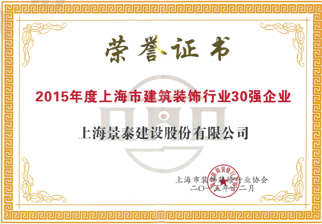 • Top-30 Decoration Enterprise of Shanghai in 2015