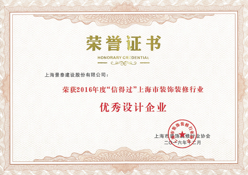 • Credible Decoration industry of Shanghai in 2016- Excellent Design Enterprise