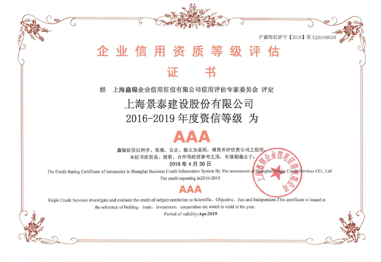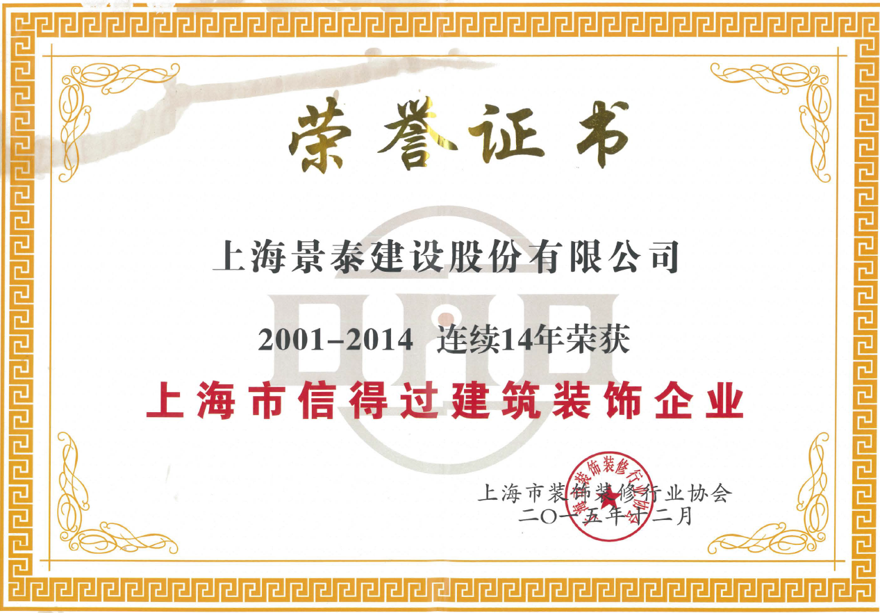• Credible Decoration Enterprise of Shanghai during 2001-2014